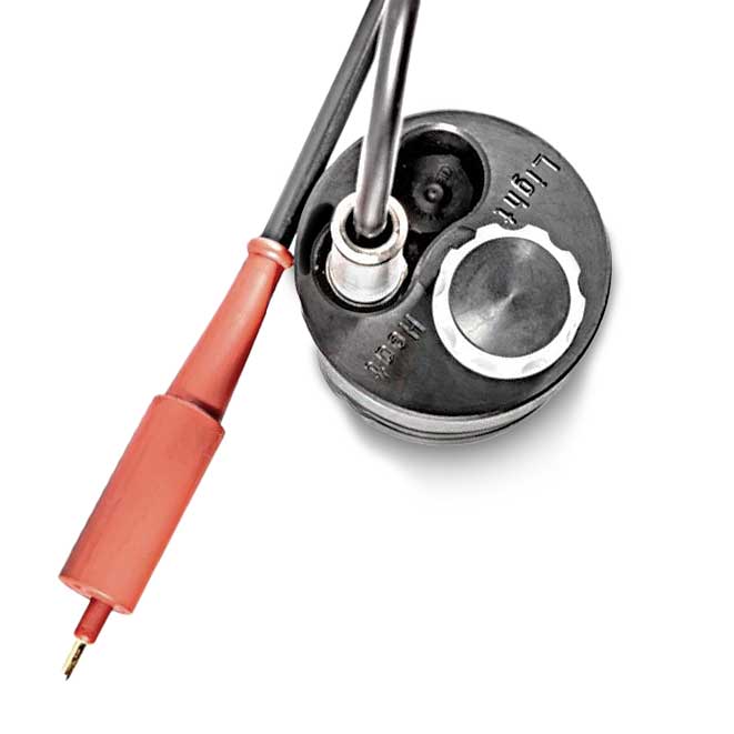 DUAL HEAT - 1 cordon WAM 85 cm, 1 cordon WAM 35 cm prise rouge, 1 interrupteur électronique avec 2 fonctions : appuyer (câble long marche/arrêt pour la lumière) & allumer (câble court chauffant à commutation continue)